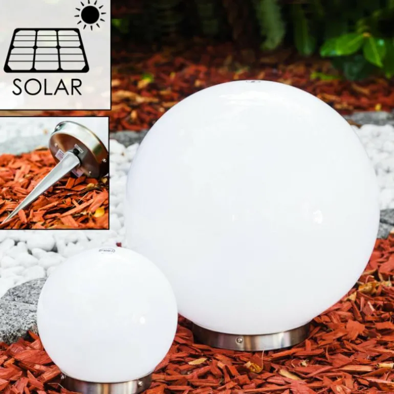Set de boules lumineuses solaires LED Acier inoxydable, 2 lumières